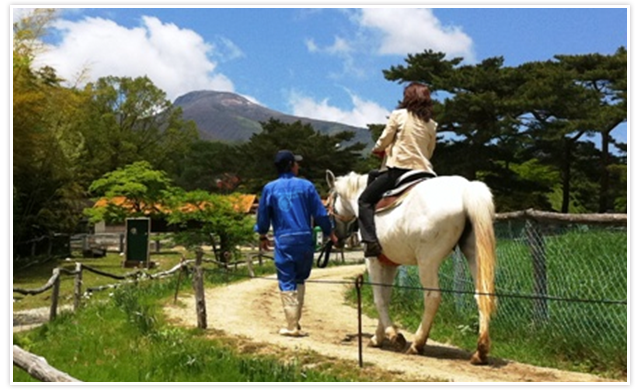 乗馬中はスタッフがついていますので、お子様はもちろんのこと、大人の方も充分に楽しめます。馬の背中から眺める那須連山、関東平野は最高です。